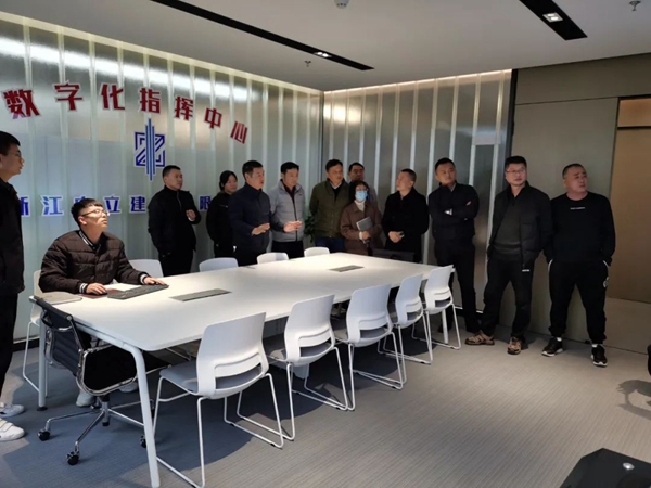 鐘局一行首先來到中立數(shù)字化指揮中心,詳細(xì)聽取“智慧工地”系統(tǒng)的運用情況,并指出信息化控制系統(tǒng)要做到好用、實用,為企業(yè)管理提高工作效率。