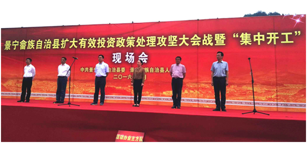 2016年5月25日下午,景寧畬族自治縣擴大有效投資政策處理攻堅大會戰(zhàn)暨“集中開工”現(xiàn)場會,在我公司中標(biāo)承建的景寧縣中心糧庫遷建工程現(xiàn)場舉行。景寧縣政府領(lǐng)導(dǎo),職能部門、工程所在地鄉(xiāng)鎮(zhèn)領(lǐng)導(dǎo),建設(shè)、施工和監(jiān)理單位代表,參加了本次現(xiàn)場會。景寧縣中心糧庫遷建工程作為集中開工的主要工程項目,我公司副總經(jīng)理譚俊勇代表我公司作施工單位表態(tài)發(fā)言。